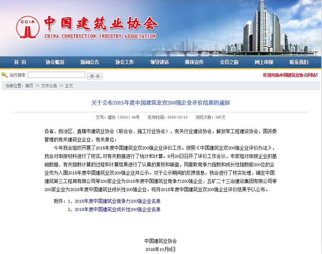 据悉,中国建筑业“双200强”企业每年发布一次,是中国建筑业协会依据《中国建筑业双200强企业评价办法》按企业基础数据、竞争力指数和成长性指数,经过审查、公示、复核、审定等程序分别取前200位,确定为中国建筑业竞争力200强企业和中国建筑业成长性200强企业,简称中国建筑业“双200强”企业。该评价活动旨在充分展示中国建筑业实力,树立行业品牌,引导和促进建筑业企业加快转变发展方式。根据建筑市场和发展情况,今年的评价工作由“双百强企业评价”调整为“双200强企业评价”,将为促进行业和企业的健康持续发展发挥积极作用。