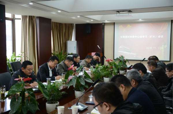 2016年11月1日下午,安建建材在机关七楼会议室召开了党委中心组学习(扩大)会议。公司领导班子成员、机关各部门负责人以及各子(分)公司党政负责人参加会议。会议由安建建材董事长、党委书记、总经理张键同志主持。