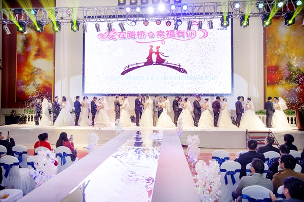 集团公司工会副主席吴晓伍为十二对新人证婚。他指出,此次婚礼热烈、喜庆、简朴、温馨,形式新颖、意义深远。他希望新人们以此为新的起点,懂得珍惜,敢于担当,用智慧和勤劳创造幸福家庭,用才干与热情促进企业发展。