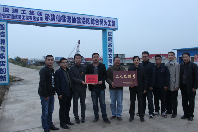 最后,考核组对安徽交航仙桃港码头项目进行“工人先锋号”授牌仪式,徐主席还特地为长期奋战在偏远地区的项目职工送来了2000元“职工书屋”专项基金。
