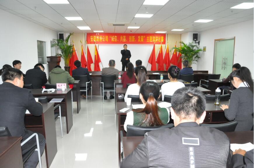 11月15日下午,由安徽路港公司团委主办的 “诚信、共赢、创新、发展”主题演讲比赛在安建大厦22楼会议室拉开帷幕,来自基层各单位和公司机关不同岗位的15名选手参加了比赛。安徽路港公司党委书记马斌、集团公司团委书记王诗旵应邀出席并讲话。
