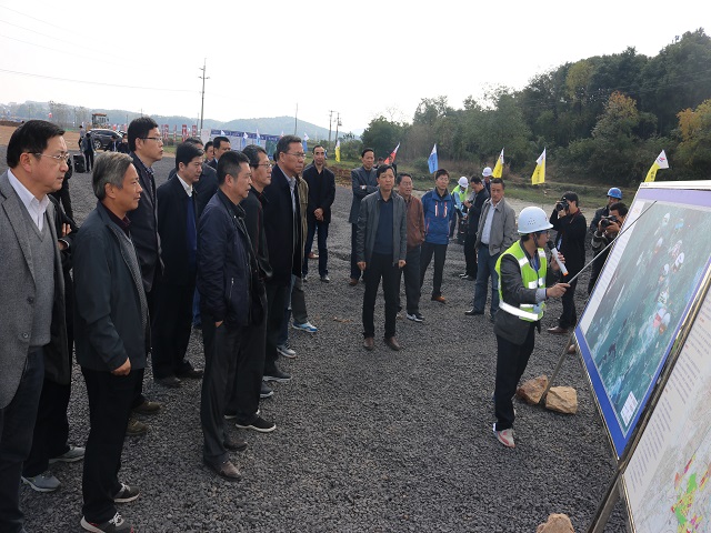 11月10日上午,铜陵市政协主席古亚伟,副主席吴少文、孙中辉、姚尚友,秘书长侯化林,市政府副秘书长倪学文等一行,在市交通运输局党委书记、局长凌勇,郊区区委书记纪红兵,区委副书记、区长张琼和政协主席、枞阳县县长罗成圣、政协主席胡海峰、项目办、驻地办等领导陪同下,莅临G347六标施工现场进行调研。