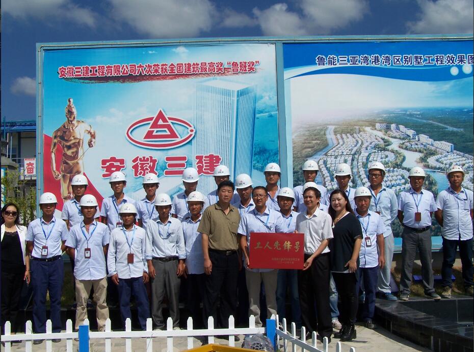 11月16日上午,集团工会副主席吴晓伍一行莅临安徽三建一分公司海南鲁能三亚湾新城港湾区一标项目,进行安徽建工集团“工人先锋号”验收并授牌。