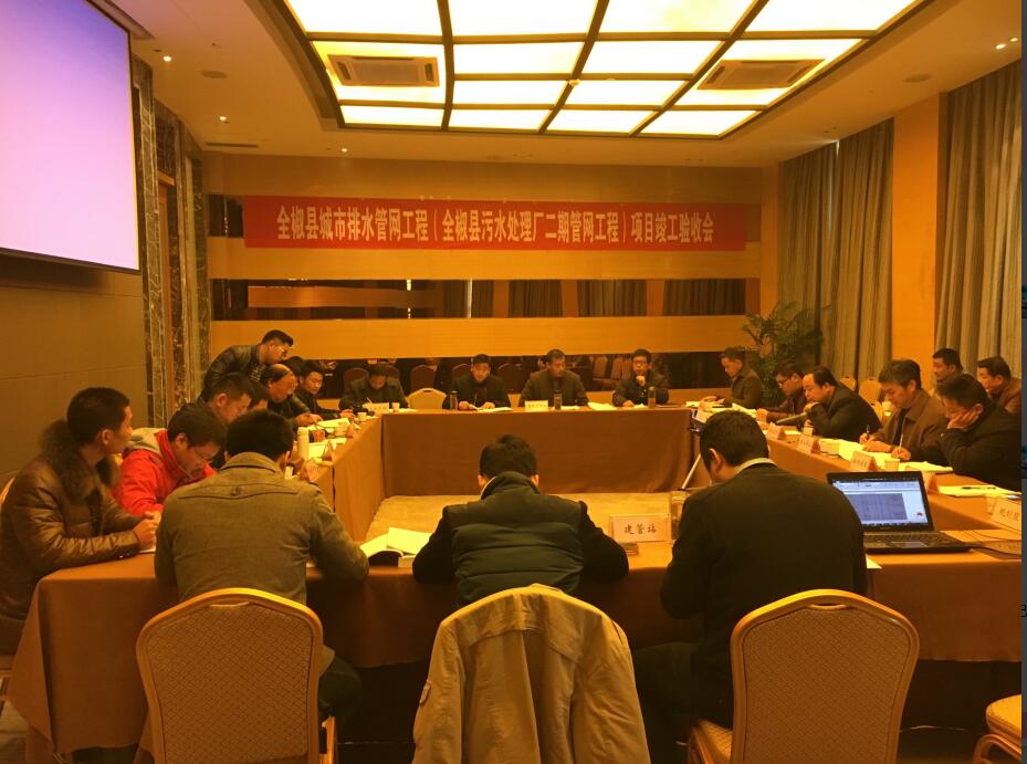 在随后召开的验收会上,验收组先后听取了建设单位、施工单位、监理单位、设计单位的汇报和相关验收组成员客观的点评,验收组成员对全椒县污水处理厂二期管网工程的工程质量给予了充分的肯定和认可。经充分讨论,验收组最终一致认为:全椒县污水处理厂二期管网工程项目已按工程建设要求完成,工程质量符合设计和规范要求,工程档案资料齐全,同意通过工程竣工验收。