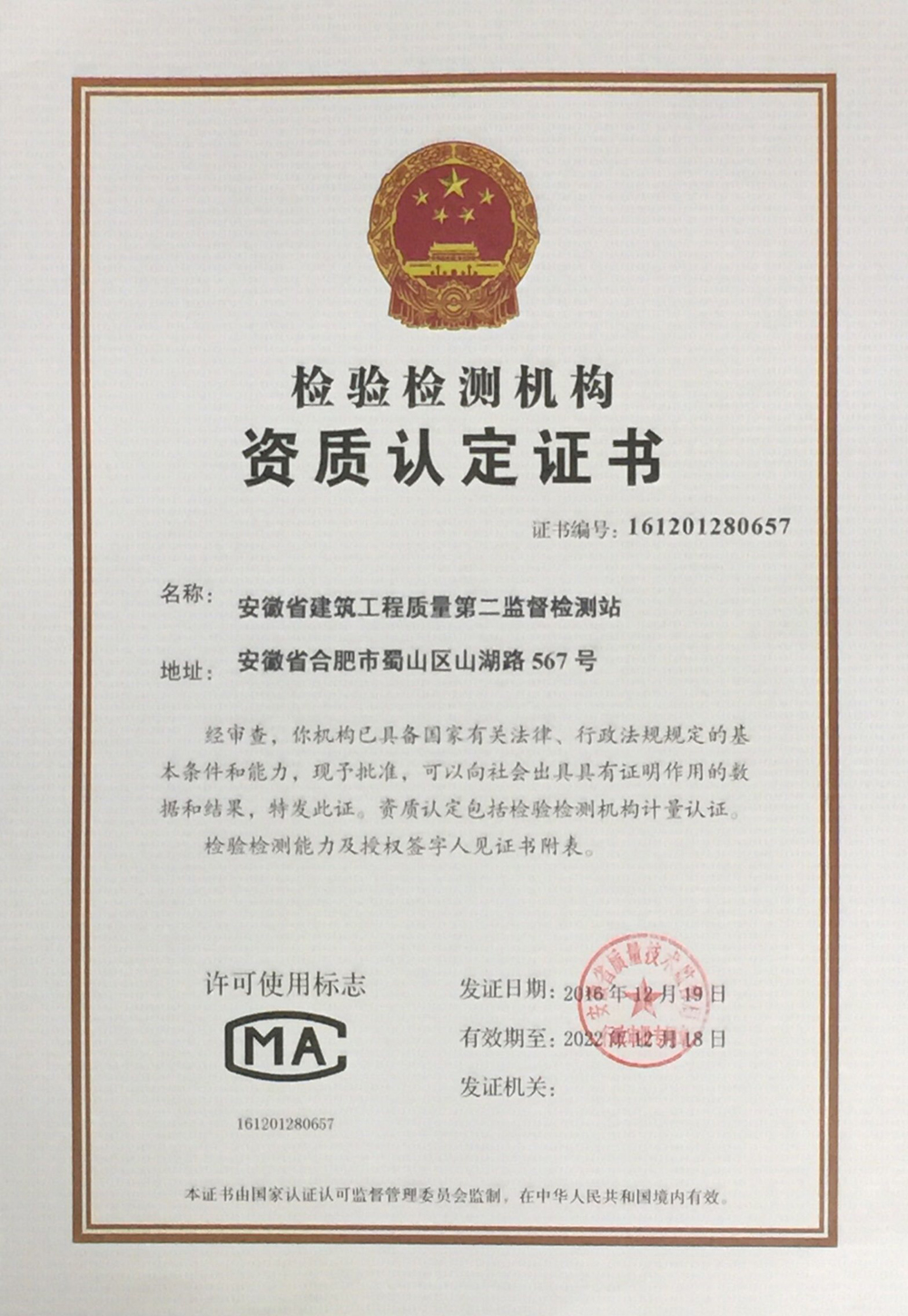 近日,安徽省质量技术监督局组织行业专家,对安徽省建筑工程质量第二监督检测站资质认定复查进行了现场评审。