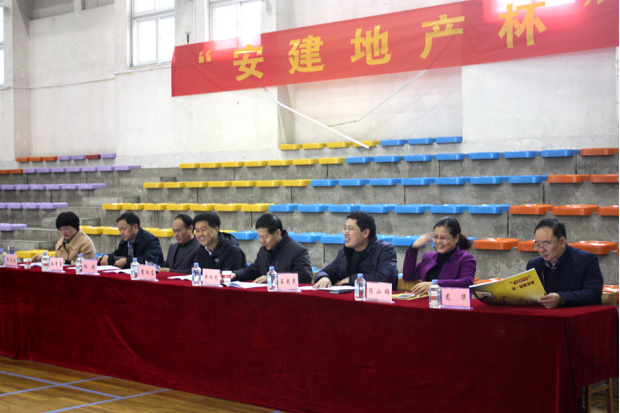 为展现安建地产员工积极向上、齐心协力、超越自我、奋勇拼搏的良好精神风貌,促进安建地产各兄弟单位之间加强交流,全面提升基础管理水平,2016年12月23日-24日,为期两天的“安建地产杯”第一届篮球赛在安徽外国语学校室内篮球馆圆满落幕。安徽建工集团副总经理、安建地产党委书记、董事长霍向东,安徽建工集团工会主席徐晓光,安建地产领导班子全体成员出席开幕式。安建地产总经理杨斌致开幕词,安徽建工集团工会主席徐晓光为篮球赛开球。