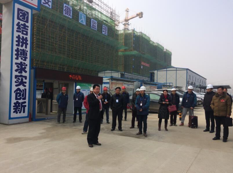 元月2日,时值元旦假期,由凤阳县人大常委组成的近200人的观摩团赴安徽三建十二公司承建的凤阳县苏商科技产业园安置小区项目观摩、慰问,凤阳县重点工程建设局局长张庞等陪同观摩。