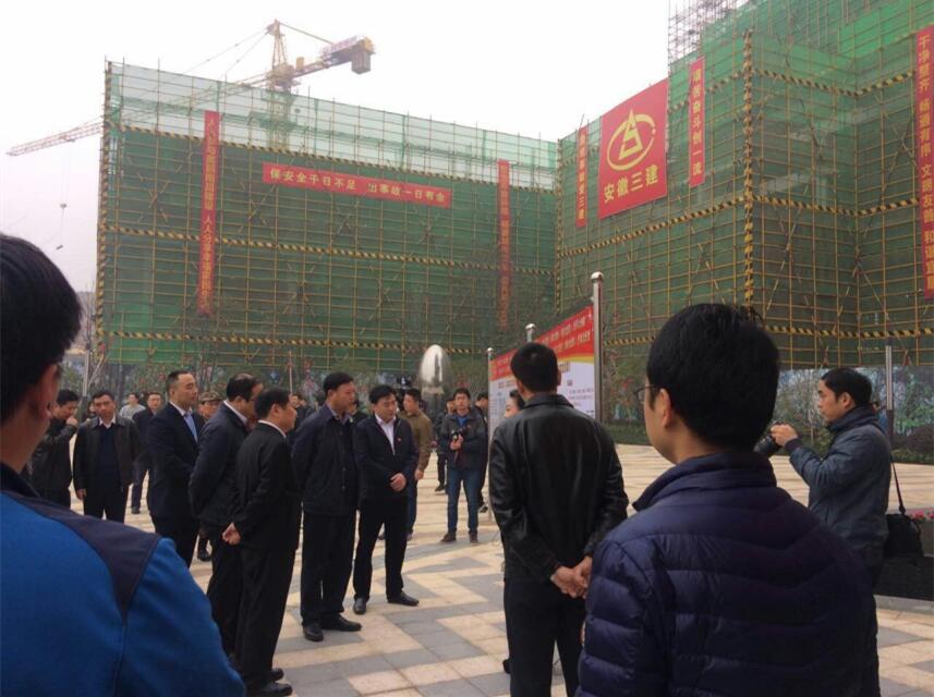1月5日,江西省委常委、副省长、南昌市委书记殷美根率南昌市四大班子莅临安徽三建公司重点项目力高澜湖花园,视察江西公司承建的南昌市东湖区总部经济大厦工程。