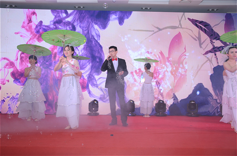 文艺演出在年味浓郁的《开门红》中拉开帷幕,优雅圣洁、热情洋溢的现代舞蹈《共圆中国梦》充分展示了安建建材员工积极向上的精神面貌;戏曲舞蹈《粉墨人生》以曼妙的身段赢得台下阵阵掌声;小品《教你处关系》、相声《新白蛇传》、默剧《破茧重生》诙谐幽默、包袱不断,现场气氛热烈、笑声不断;情景剧《未来我们一起走》笑中带泪,展现安建建材一线员工坚守工地无私奉献的精神;建材好声音戴明明、刘礼彬等也纷纷献唱。晚会期间,安建建材党委副书记、纪委书记胡运春一展歌喉,一曲《想家的时候》将晚会推向了高潮。晚会最后在一曲气势磅礴、大爱无疆的《爱中华 中国之梦》大合唱中落下了帷幕。