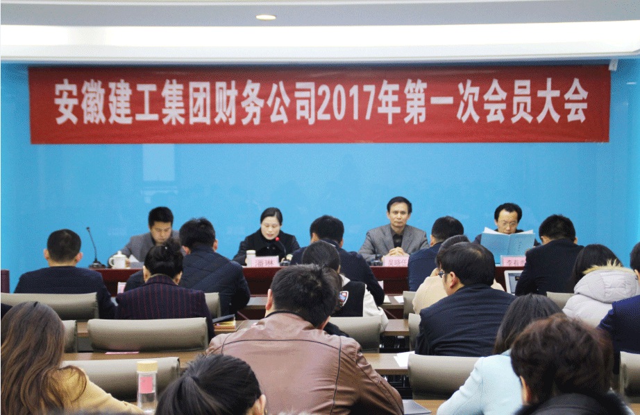 2017年3月20日,安建财务公司第一次会员大会在安建大厦17楼会议室胜利召开。集团工会副主席吴晓伍应邀出席大会。会议由公司党总支书记、副总经理潘琳主持,财务公司、小贷公司、保理公司等55名员工参加会议。