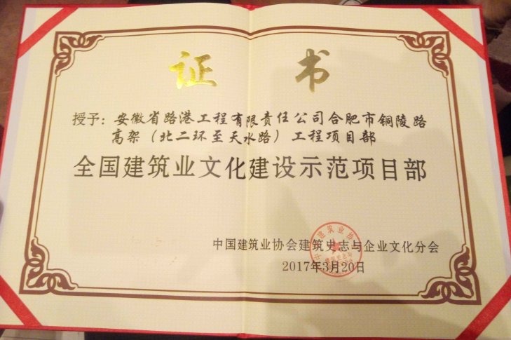 3月25日,从第二届全国建筑业企业文化建设经验交流会现场传来喜讯,安徽路港铜陵路高架(北二环至天水路)工程项目部获得首批“全国建筑业文化建设示范项目部”殊荣,全国仅有55个项目部获此荣誉。