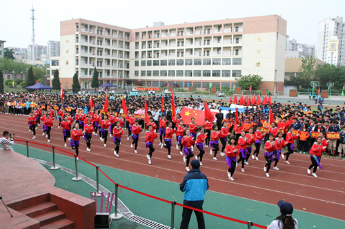 伴随着铿锵有力的运动进行曲,在国旗队、校旗队的带领下,裁判员方队和运动员方队依次入场,矫健的步伐迈出激情昂扬的斗志,嘹亮的口号喊出奋力拚搏的决心,他们以饱满的精神风貌接受主席台上领导和广大师生的检阅,看台上不时响起热烈的掌声。