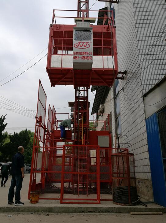 历经近3个月的研发,不断的改进、加工、试制,4月18日,变频施工升降机终于正式试制成功。变频施工升降机具有安全系数高、安装使用简单、启动电流智能调节、启动、停止时系统实现零速力矩保持、无“溜笼”现象发生、平层定位准确、刹车自动检测,每天开机前刹车自动检测,如动力不足,系统用液晶显示和语言播放提示维修人员对刹车进行维护等方面优点。