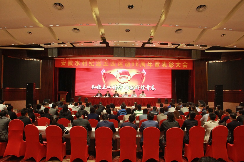 5月3日,安徽水利在和顺大酒店(蚌埠店)召开纪念“五四”运动98周年暨表彰大会,庆祝“五四”青年节,表彰先进,弘扬五四精神。集团公司团委书记王诗旵应邀出席会议。安徽水利党委书记、总经理张晓林出席会议并讲话,党委副书记、纪委书记戴树明,工会主席朱乐华出席会议。各单位党总支(支部)书记、工会主席、团总支(支部)书记、优秀团员、最美青工、在蚌单位青年代表150余人参加会议。公司党委工作部部长高立久主持会议。