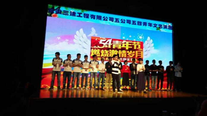 5月4日,由五公司团支部举办的“五月放歌、青春飞扬”文艺演出精彩呈现。五公司借此机会以团支部为联系点,搭建起青春的桥梁,为青年员工提供一个才艺展示的平台,放飞梦想、激扬青春、共创未来。演出前,为表扬先进,树立典型,针对五公司所属项目部表现突出的12名优秀青年人才给予通报表彰; 下午3点整,伴随着由力高·君御世家一标段选送的合唱曲目《少年壮志不言愁》拉响了演出的号角。随后一个个节目依次精彩亮相,从集体诗歌朗诵《我们是城市建设者》到女生独唱《小幸运》再到《突然的自我》、《还是朋友》、《红色高跟鞋》、《有多少爱可以重来》,从小品《共享单车》到《应聘》,无一不体现项目青年员工的创造力和舞台表演力。