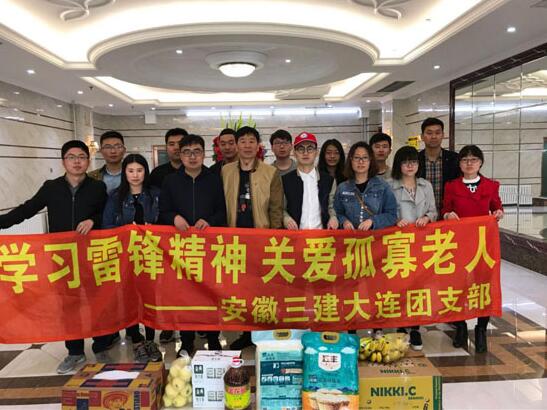 5月4日上午,大连公司团支部组织青年团员慰问大连甘井子区社会福利院孤寡老人,用学习雷锋精神的实际行动为“五四”青年节献礼。在活动中,青年团员认真听取福利院院长对孤寡老人生活环境、身心健康的介绍,用心交流,用爱表达,为老人们送去了米、油、水果等慰问品,帮助他们整理被褥、清扫房间,同他们在吃饭之余唠家常,了解他们的生活困难,通过这种特殊的方式为他们送去温暖和关怀,展示了安徽三建青年团员在连地区的良好形象。
