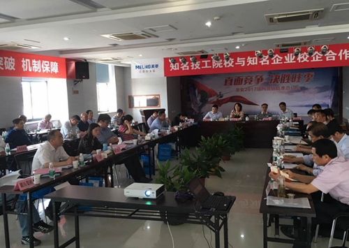 5月13日下午,安徽省人社厅委托安徽省职业培训协会院校分会召开的知名技工院校与知名企业校企合作对接会在合肥美菱股份有限公司隆重举行。省人社厅职业能力建设处刘晓燕处长等领导出席会议。省内13家知名技工院校校长、12家知名企业负责人、合肥市人社局职业能力处负责人等50余人参加会议,技师学院任建设副院长、招生就业处有关人员参加会议。