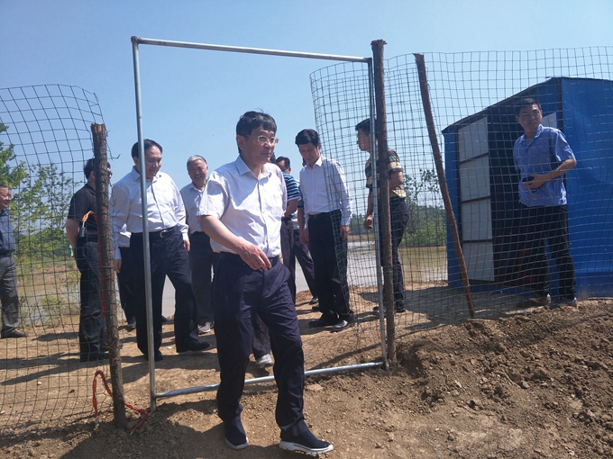 5月17日上午,安徽省交通厅副厅长罗宁莅临安徽交航公司沱浍河01标项目部检查指导工作,淮北市副市长张家忠、濉溪县县长赵德志、省港投集团董事长李家俊、副董事长王灿、淮北港投公司董事长丁杰、总经理汪顺利、安徽交航公司副总经理汪崇龙等陪同检查。