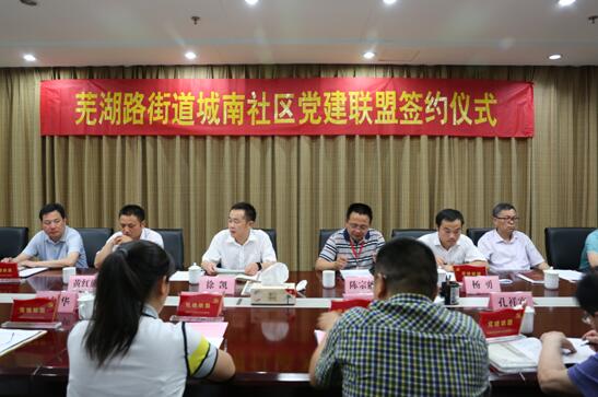 5月26日,合肥芜湖路街道城南社区党建联盟正式成立。安徽三建、省建行、省粮食局、省直公积金管理中心、安建建材及安医大四附院和市政设施信息中心等7家单位与城南社区签订“城南社区党建联盟协议书”,以共同促进党建工作开展。