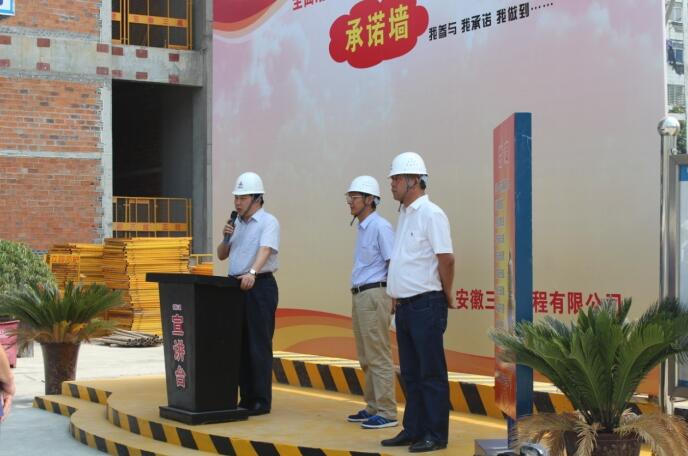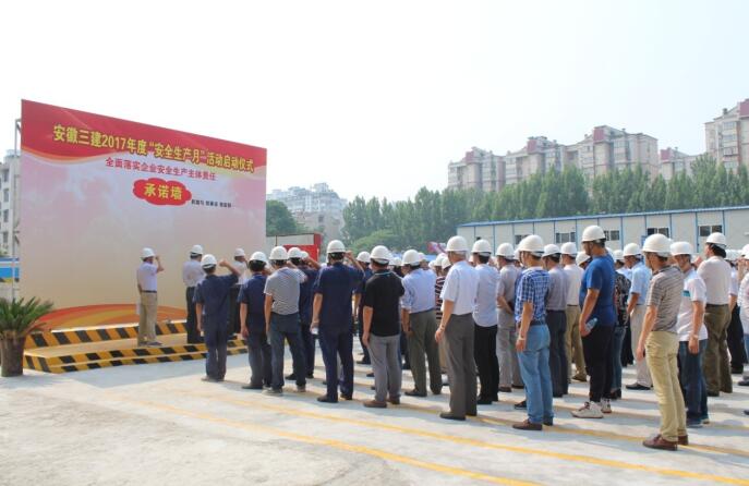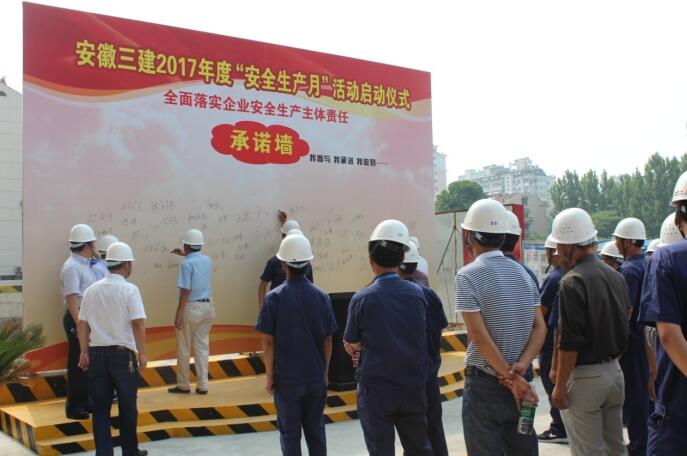 期间,全体员工郑重宣誓,到活动承诺墙上签字,进一步加深了对安全工作重要性的认识,并对安全生产工作作出承诺,拉开了安徽三建2017年 “安全生产月”活动的序幕。