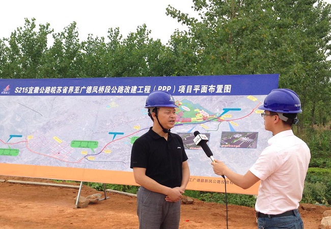 在采访中,洪杰经理向安徽电视台记者详细介绍了广德S215项目的项目概况、施工进展、质量控制及安全文明施工等情况;广德县公路局熊局长在接受安徽电视台记者采访中充分肯定了路桥集团在S215项目建设中的突出作用,对路桥集团的施工能力表示认可。