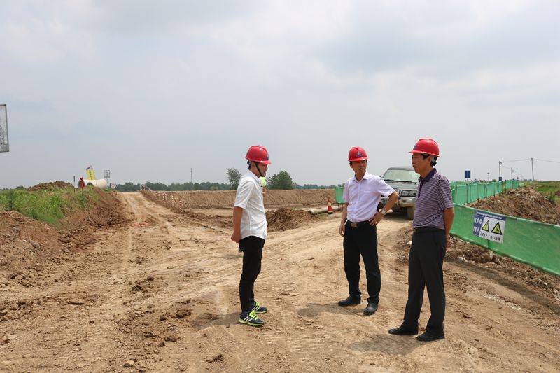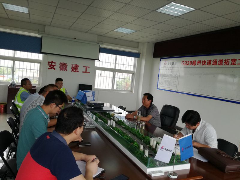 6月13日,安徽路港公司董事长、总经理李振标在安全管理部副经理石无勇的陪同下,赴国道104明光绕城线01标和G328滁宁快速通道拓宽工程项目部检查指导工作。