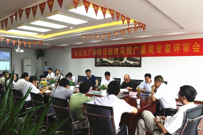 安建·锦绣花园工程部工作人员首先就项目的基本情况向专家组成员做了全面的汇报,并详细介绍了住宅产业化施工工艺及施工过程中的创新工艺与节能环保措施,获得专家组一致认可。随后,专家组成员一行深入施工现场,全方位察看现场施工、工地管理及周边配套等相关情况,专家组成员一致认定安建·锦绣花园桃花园采用住宅产业化、精装修、节能绿色环保等多项举措符合“广厦奖”评选条件,并就现场施工、物业管理等方面提出宝贵建议,要求安建·锦绣花园项目组要注意住宅产业化施工细节,进一步做好绿色施工与文明施工,做到“四节一环保”。