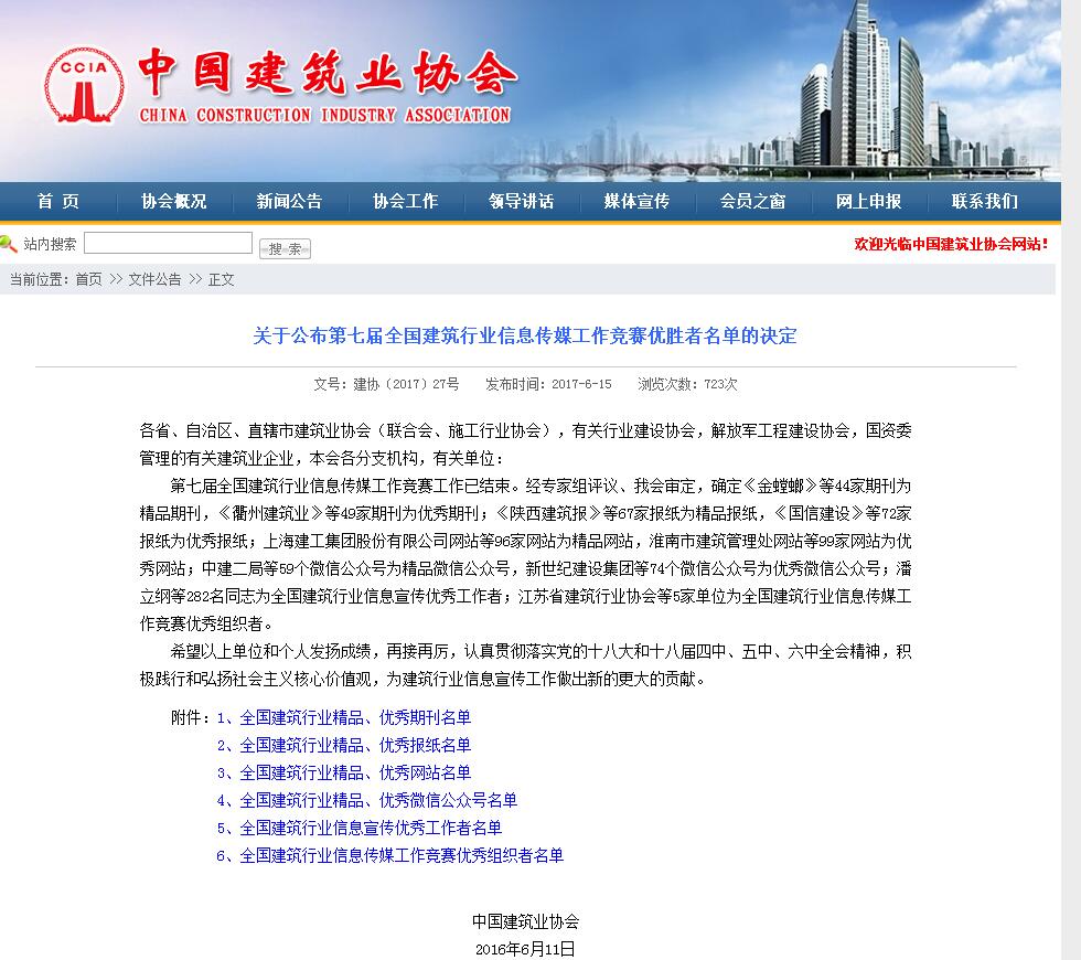 据悉,该奖项是经各市建筑业协会推荐,中国建筑业专家评审会审定,后期将召开表彰会议。此奖项的获得,标志着安徽三建公司在一年一度的全国建筑行业信息传媒工作竞赛中奋力赶超,勇创佳绩,再攀高峰。《安徽三建报》多年获此荣誉,公司网站首次获此殊荣。
