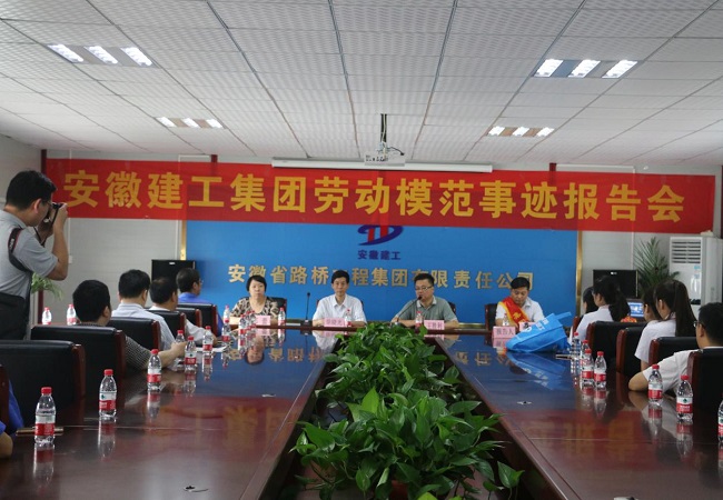 6月15日,安徽建工集团劳动模范事迹报告团来到安徽路桥集团合安高速改扩建01标项目部,为项目员工作集团劳模先进事迹报告。集团工会徐晓光主席,公司党委委员、纪委书记、工会主席王胜利,财务总监邓蕾等出席报告会。路桥集团机关及项目部共计50余人参加此次报告会。