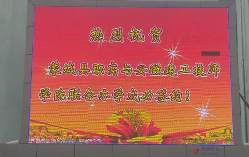 蒙城县职高是安徽省首批国家重点职业高中、安徽省首批县级职教中心、国家改革与发展示范校,在校生6000余人。与蒙城县高级职业中学的成功合作,是安徽建工技师学院实施“高端引领、特色立校”发展战略、创新高技能人才培养模式、密切校校合作、校企合作的重要举措。