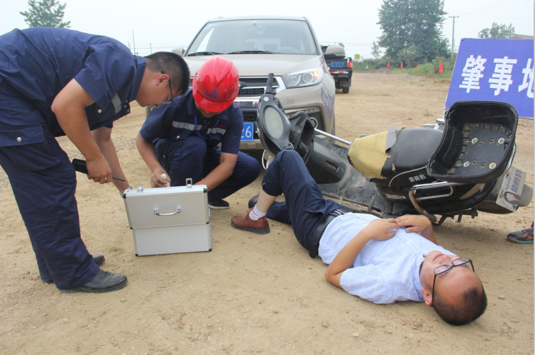 本次交通事故应急演练是模拟在052县道与新建段交叉路口,项目部车辆与当地人员所骑行的电瓶车发展碰撞,导致电瓶车驾驶员受伤骨折,通过该项目部起动应急预案展开救援,各救援小组在项目部、工管部和公司以及与110、120的紧密联合,成功抢险。此外,还开展了安徽建工安全誓词宣誓活动和安全消防应急演练,旨在提高项目职工安全生产意识和火灾应急救援能力。