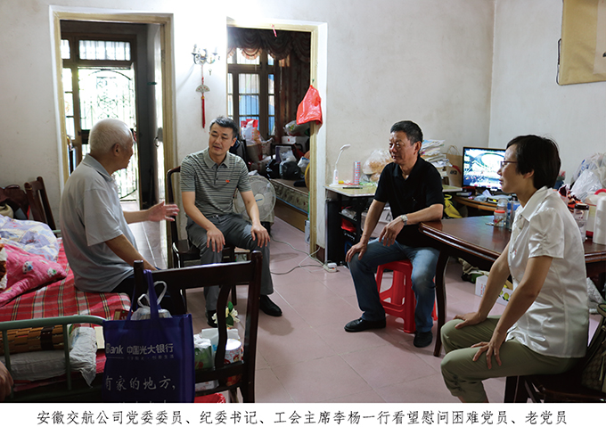 “七一”来临之际,集团公司党委、安徽交航公司党委分别看望慰问了安徽交航困难党员、老党员,给他们送去组织的问候和节日的祝福,共同庆祝中国共产党成立96周年。