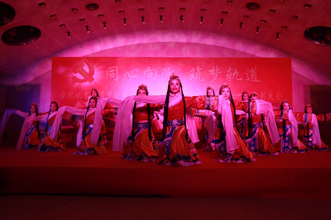 金色的锤镰,熠熠生辉,放射光芒。“是谁帮咱们修公路,是谁帮咱们架桥梁,是那亲人解放军,是那亲人共产党。”7月1日,在伟大的中国共产党成立96周年之际,安徽交航公司精心选送的藏族舞蹈《洗衣歌》在合肥市轨道交通有限公司纪念建党96周年暨“七一”表彰大会文艺汇演中顺利演出。