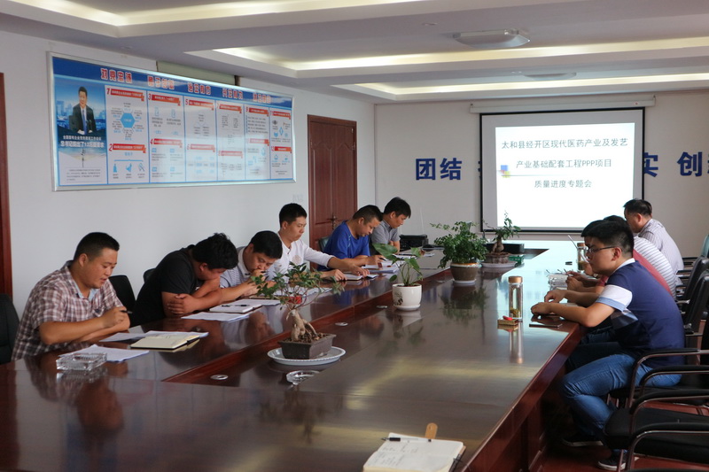 7月4日,太和县安建投资有限公司召开太和PPP项目管理工作专题会部署该项目下一阶段工作。项目公司总经理高伟,项目公司各部门主要负责人,安徽二建太和PPP项目经理部及各工区负责人参加会议。会议由安建投资公司副总经理、项目公司董事长朱友良主持。