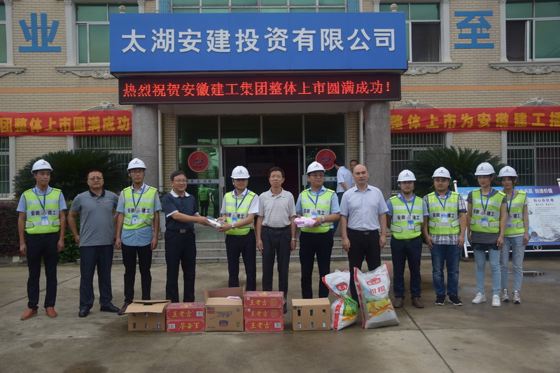 6月份以来,气温持续升高。为了保障广大员工的身体健康,推进生产经营工作的顺利进行,7月7日,安建投资公司关爱职工夏送清凉慰问活动首站来到了太湖PPP项目,把企业的关爱送到了一线员工的心坎上。集团公司副总经理王厚良,集团总经理助理、工管部主任童宗胜,集团公司安全监察局副主任葛辉,安建投资公司总经理、党总支副书记朱忠明,安建投资公司党总支书记、副总经理余志刚等参加送清凉活动。