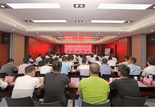 7月7日,路桥集团检测公司2017年第二季度生产安全会暨工地试验室管理培训会在安建大厦8楼会议室召开。路桥集团党委书记、董事长、总经理盛明宏莅临会议并作重要讲话。检测公司领导班子成员、机关各部门、各项目试验室六十余人参加,会议由检测公司副总经理、工会主席佐群主持。