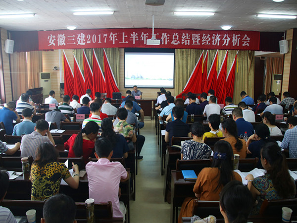 为全面分析公司上半年经济形势并总结梳理上半年各项工作,精心谋划下半年各项重点工作部署,安徽三建公司于7月19至20日召开了2017年上半年工作总结暨经济分析会。两天的会议,全面总结了今年上半年的经济指标完成情况、重点工作,客观的分析了企业在经营活动中存在的问题及差距、面临的难题与挑战,同时对下一阶段工作及主要措施进行了详细的谋划。安徽三建公司董事长、党委书记、总经理左登宏及公司所属各单位党政主要领导、项目经理、技术负责及机关各部门负责人等150余人参加会议。为期两天的会议分别由该司党委副书记黄丽春、总工程师武朝晖主持。