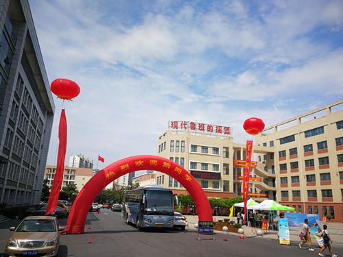 今天是个好日子,天公作美,秋阳高照、秋高气爽。8月19日是安徽建工技师学院2017级秋季新生报到首日,校园内,彩虹门耸立、横幅高挂、彩旗飘扬、人潮涌动、车流如梭。一大早,陆续有家长带着学生前来排队报到,场面十分火爆,老师、家长、学生欢欢喜喜、忙忙碌碌,整个校园像过节一样喜庆、热闹。