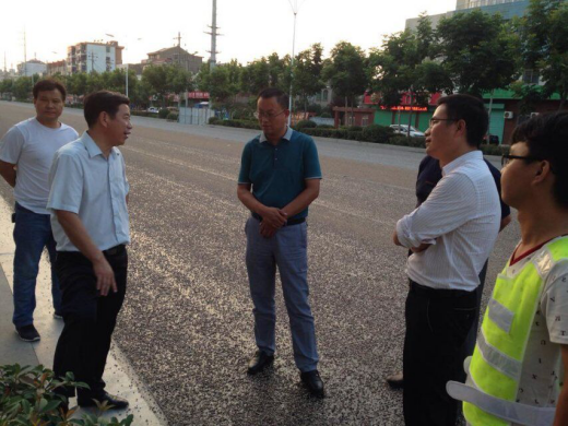 沥青摊铺施工当天,固镇县委常委、城关镇党委书记路军,重点局局长李敬志莅临现场视察指导。路书记鼓励项目部要在固镇县S101迎宾大道改造项目施工过程中,利用大好时光,以精益求精的工作态度追求工程质量、以争分夺秒的姿态拼抢工程进度,确保按时保质完成建设任务。