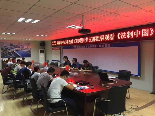 (图为芜湖市中山桥项目党支部组织观看《法制中国》纪录片)