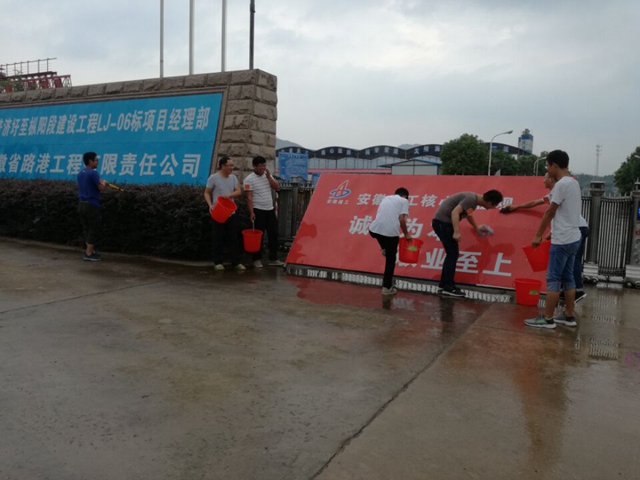 (图为G347普纵段项目党支部组织党员、团员青年清洗宣传标牌及安全标识标牌,整理摆放安全设施)