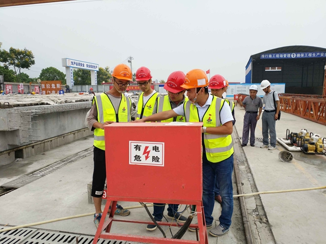 (图为铜陵路高架项目党支部组织全体党员对施工现场进行质量安全巡查)