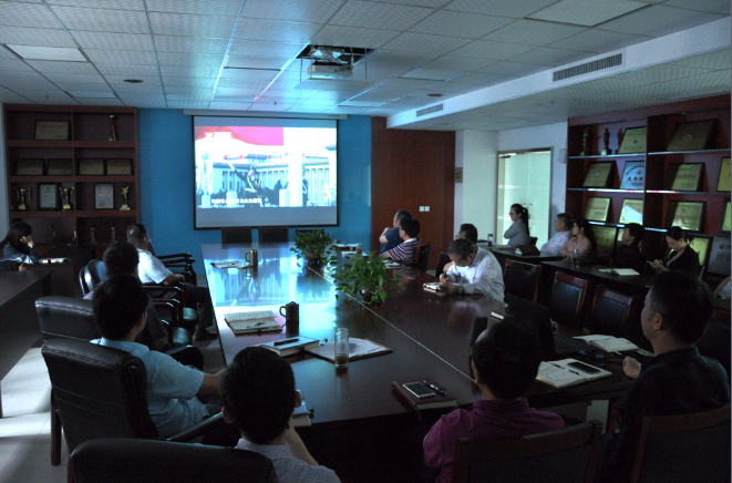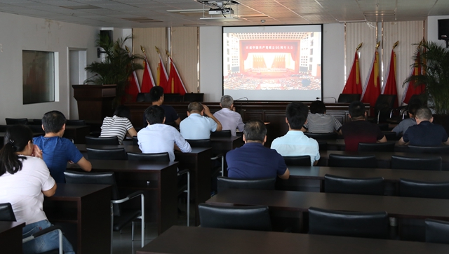 (图为公司机关第一党支部组织召开党员大会,并开展警示教育,集中观看专题片《巡视利剑》)