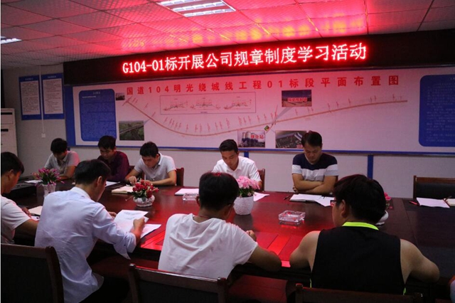 (图为G104明光绕城线项目党支部组织学习公司规章制度)