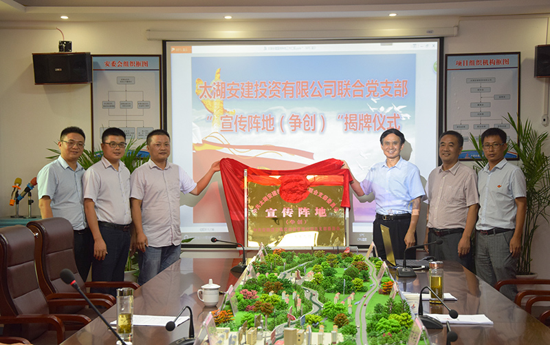 9月10日,安建投资公司“宣传阵地(争创)”揭牌暨党建工作座谈会在太湖安建投资有限公司联合党支部举行,集团公司党委工作部主任徐文联、工会副主席吴晓伍、工会调研员胡爱红、党委工作部副主任、团委书记王诗旵,安建投资公司党总支书记、副总经理余志刚,安徽路港公司党委书记马斌参加会议。太湖县交通运输局局长黄东升,太湖县县直工委副书记刘润东,太湖县交通投资有限公司董事长黄华,太湖安建投资有限公司联合党支部全体人员应邀出席会议。