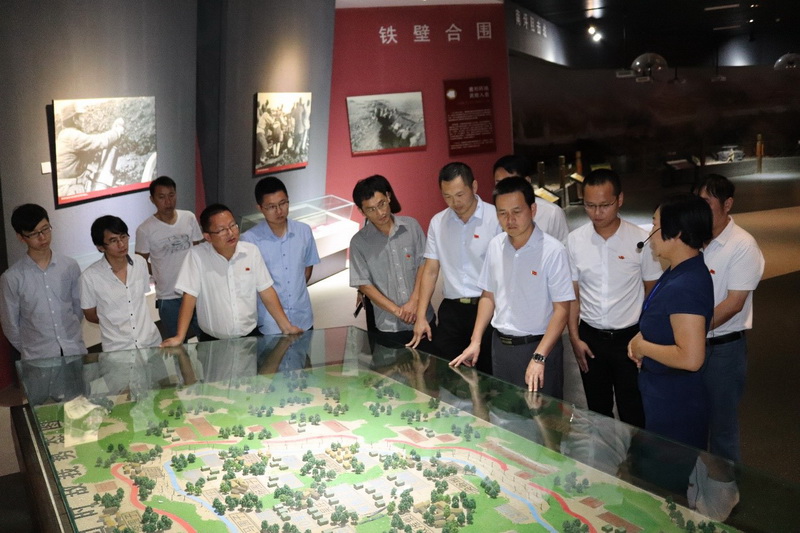 在淮海战役烈士纪念碑前,全体党员面对党旗,举起右拳,重温了入党誓词。随后,在讲解员引导下,全体党员参观了双堆集歼灭战纪念馆,倾听讲解员介绍淮海战役历史,观看珍贵的历史照片和文献资料,感受革命前辈一往无前的英雄气概和不屈不挠的革命意志。