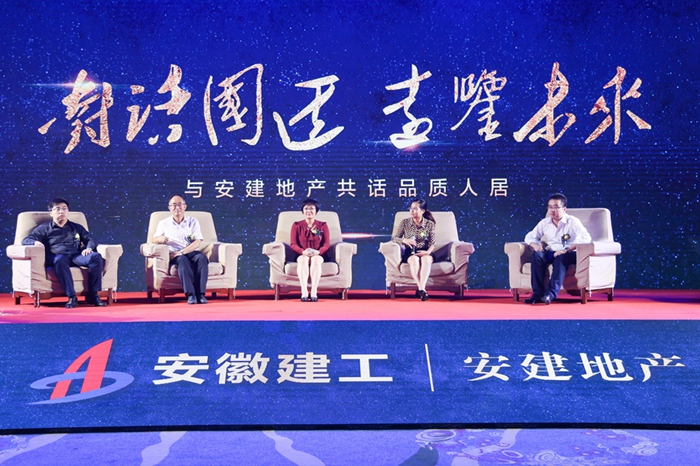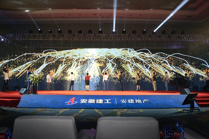 一段安建地产品牌宣传片,一首《安徽建工之歌》诗朗诵,一幅展现安建地产发展历程的沙画,全场来宾也仿佛一起走进了安徽建工、安建地产砥砺前行的光辉岁月,深刻感受到了安徽建工集团身为中国500强企业,始终秉承“工匠精神”,坚持不懈追求精工品质,以及安建地产始终坚持“诚信为本,敬业至上”的企业核心价值观,坚持“创造空间艺术,成就人文生活”的理念,致力于打造建筑精品,构建品质人居。