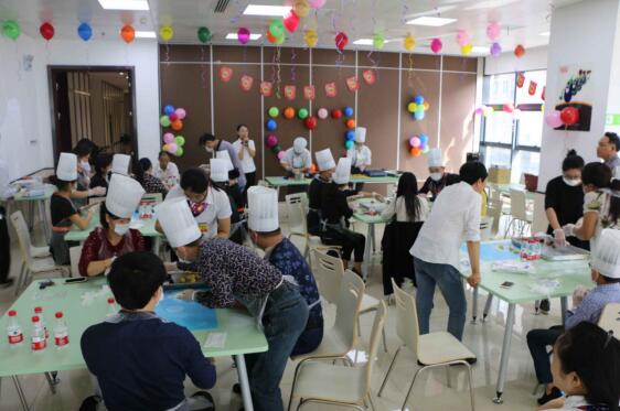 安建物业公司董事长王金宏同志首先致辞并预祝大家“两节”快乐!随后,参与者在面点师的讲解示范下,亲自动手做月饼,并在等待月饼烘焙过程中,积极参与游戏活动,现场气氛热烈。