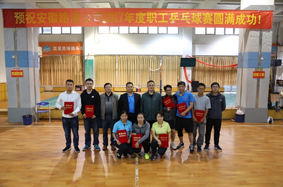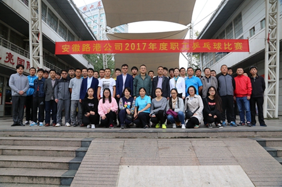 为更好地发挥职工体育活动在建设和谐企业中的积极作用,丰富公司职工业余文化生活,安徽路港公司工会于10月13日在安徽省全民健身活动中心举办了2017年度职工乒乓球比赛。集团工会调研员胡爱红、安徽路港公司党委书记马斌、工会主席干戈亲临现场为选手加油鼓劲。来自公司机关和路面分公司、路港通试验检测公司、郎溪路04标等子分公司、项目部的19支球队、39名选手参加了男子单打、女子单打两个项目的比赛。