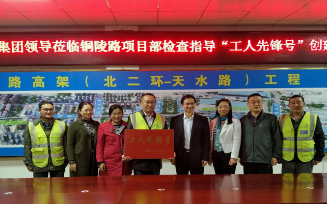 10月16日下午,集团工会副主席吴晓伍、调研员胡爱红、安徽一建公司工会主席黄方一行赴安徽路港铜陵路高架项目部对“工人先锋号”创建工作进行验收并现场授牌,安徽路港公司工会主席干戈等陪同。